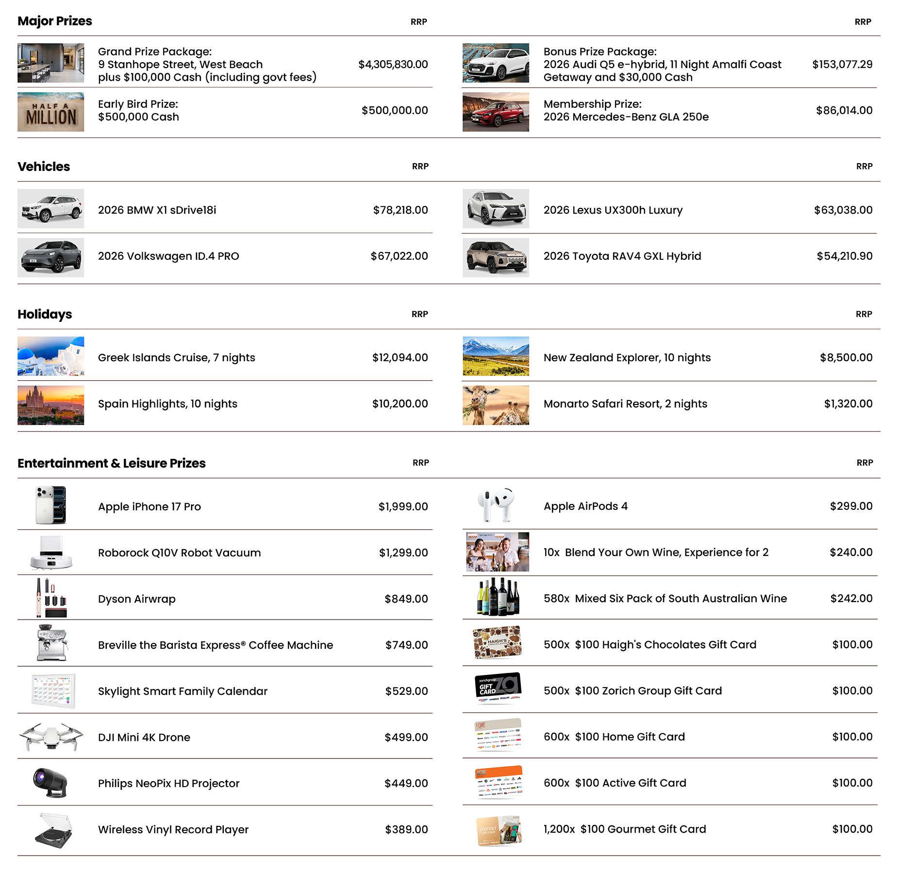 Your Home Lottery tickets stay in every prize draw, including luxury cars, unforgettable getaways and more!